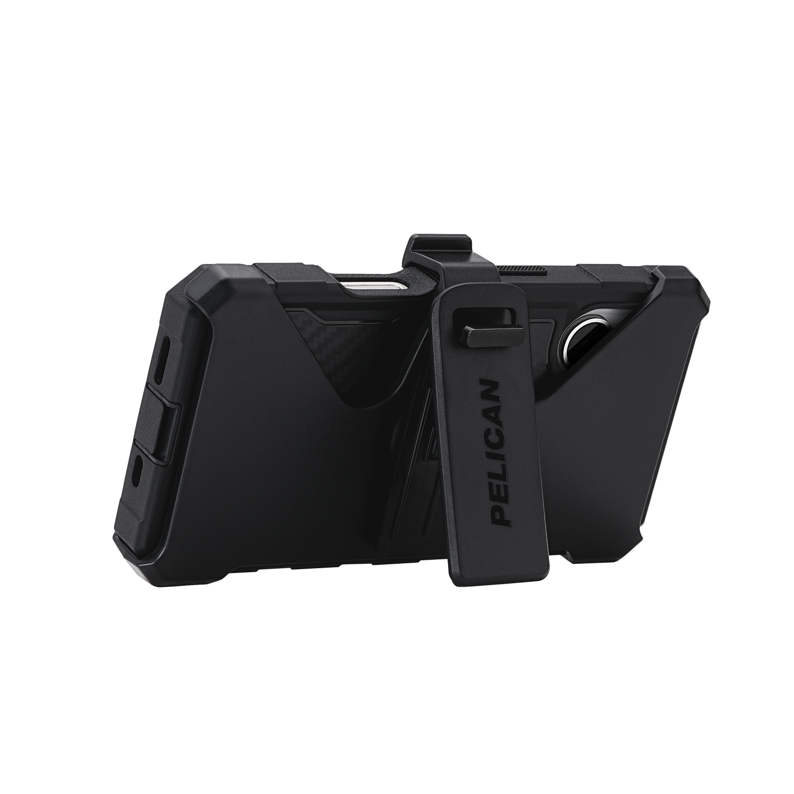 The Pelican Shield MagSafe Case iPhone 17 with Holster - Carbon Fibre offers top-of-the-line protection that exceeds military standards. Engineered with advanced materials and design, it ensures your device remains secure and functional, all while providing full MagSafe compatibility and additional convenience with a holster that doubles as a stand.