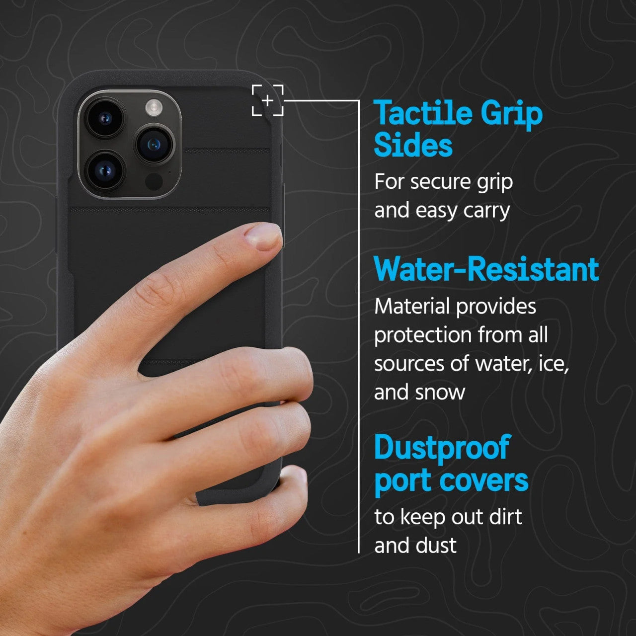 Pelican Voyager Magsafe Case iPhone 14 Pro - Black protects against impact, shock, dust and sharp-edged attacks to your screen. Four layers of rigid polycarbonate and energy-absorbing TPR and PU disperse impact energy, and we've tested it to military specifications to survive multiple drops. The Pelican Voyager case also features a holster and an integrated kickstand to help you read of view your favourite movies. The thinnest ultra rugged case on the market!