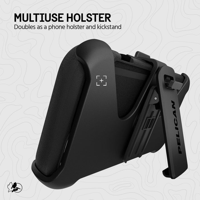 Pelican Voyager MagSafe Case iPhone 16e/15/14/13 - Black is engineered to be the slimmest yet most durable case available. Offering exceptional protection with a sleek design, it ensures your device remains safe while providing full MagSafe compatibility and additional functionality with a holster that doubles as a stand.